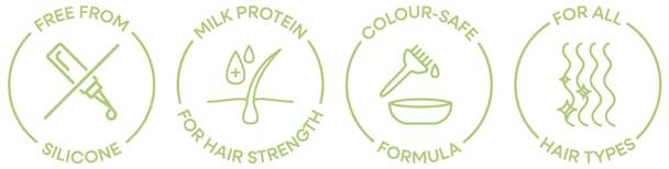• Milk Protein helps strengthen, protect and revitalise hair fibres