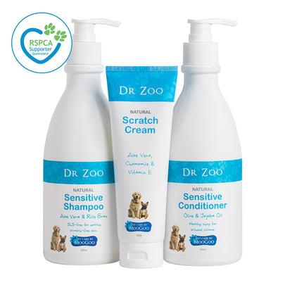 Lastly, apply our Scratch Cream to your pets dry and scratchy areas. Made of edible oils and other gentle ingredients such as Aloe Vera and Chamomile to calm the skin. Keep your pets favourite toy handy as a distraction to stop them licking.