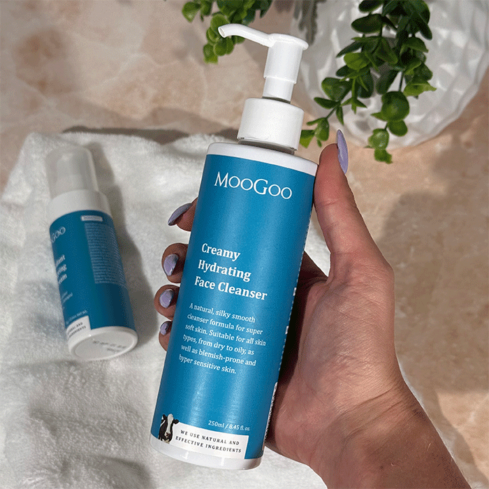 We aren’t called MooGoo because our cleansers are made of milk. No cleansers or moisturisers are made of milk, or in fact, have any meaningful amount of milk in them at all. Despite what labels may claim. If you think about it, putting milk in a moisturiser and then sitting it on the shelf for a year or so would make it very smelly! The only exception to this is our Goats Milk & Hydrating Buttermilk Cleansing Bars, which go through a saponification process to make them stable. We do also use Milk Protein in some of our products, like in our bestselling Milk Wash, because the protein helps with skin elasticity. Milk Protein doesn’t go rancid, it is the fats and sugars in milk that go sour.