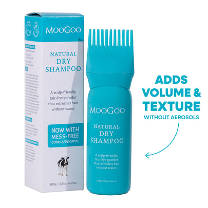 Most dry shampoos are aerosol sprays filled with volatile chemicals that can irritate the scalp and harm your lungs. Not ours. MooGoo’s aerosol-free, natural Dry Shampoo uses fine, food-based powders in a handy shaker bottle - safe, gentle and effective, even for sensitive scalps.